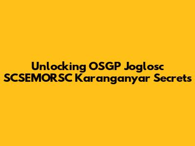 Unlocking OSGP Joglosc SCSEMORSC Karanganyar Secrets